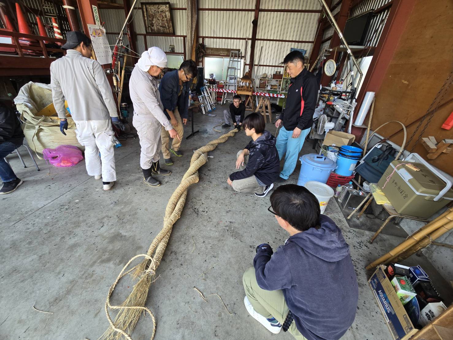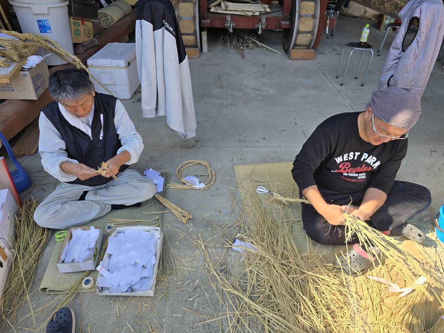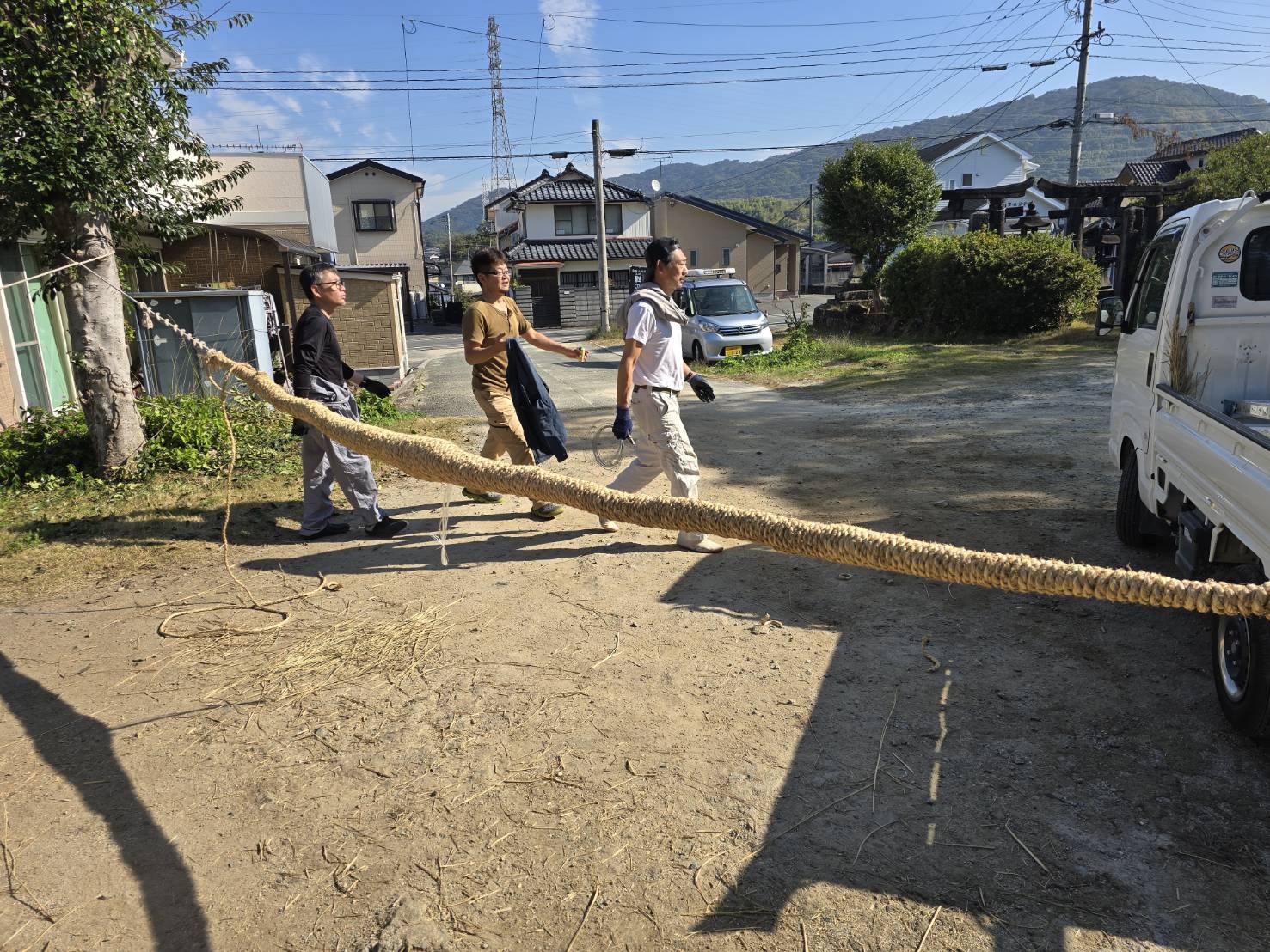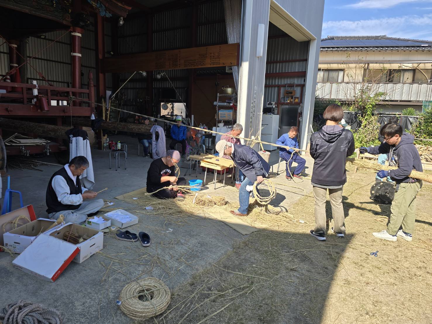 11/16に大注連縄作りを行いました。毎年この時期に三池本町祗園宮用と三池熊野神社用の二本作ります。