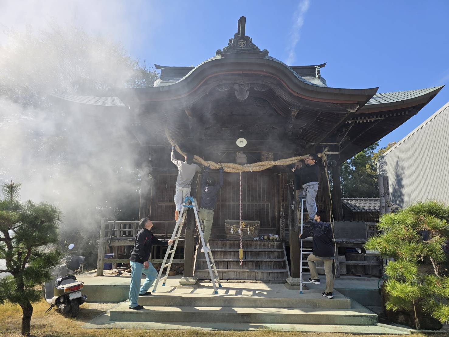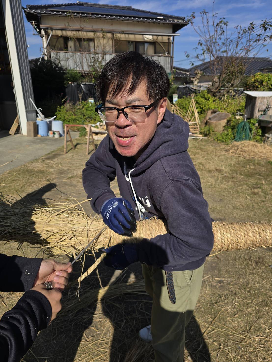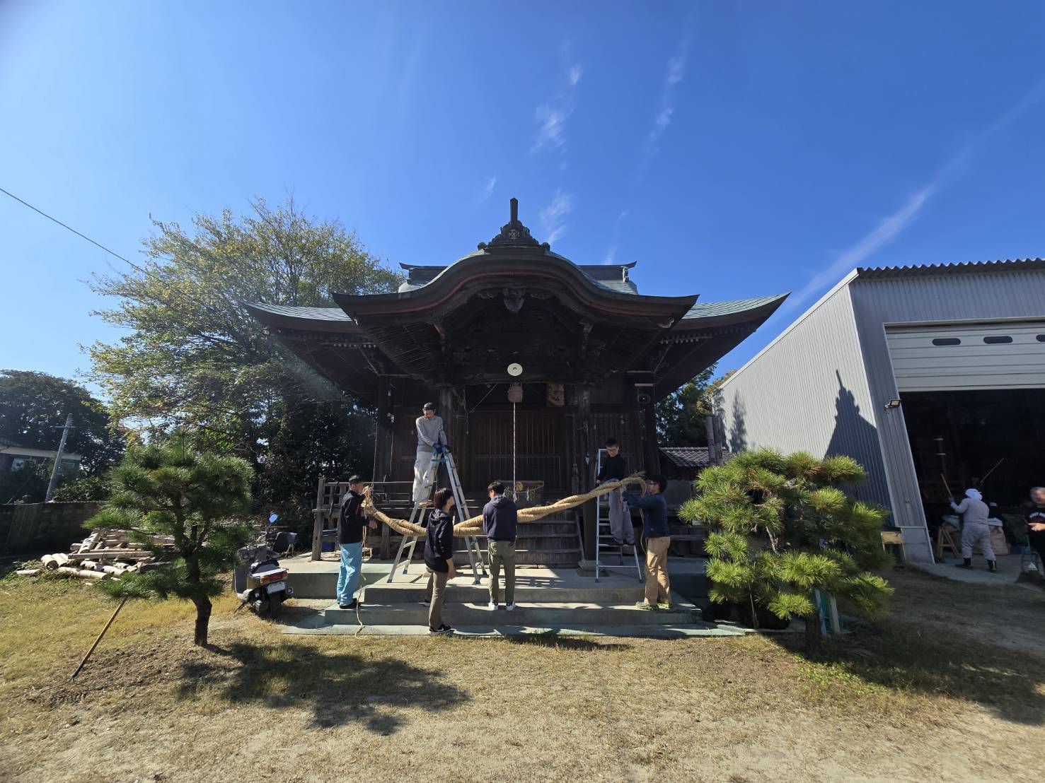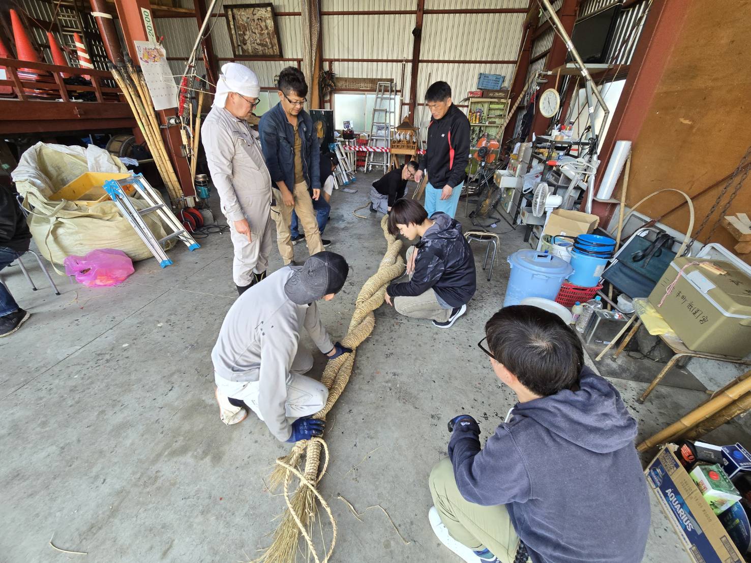 11/16に大注連縄作りを行いました。毎年この時期に三池本町祗園宮用と三池熊野神社用の二本作ります。