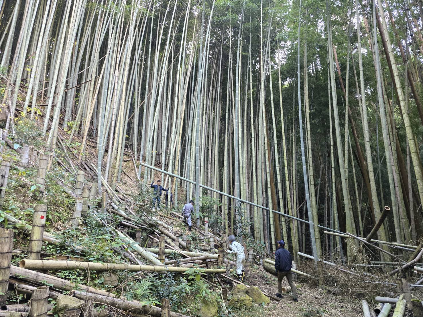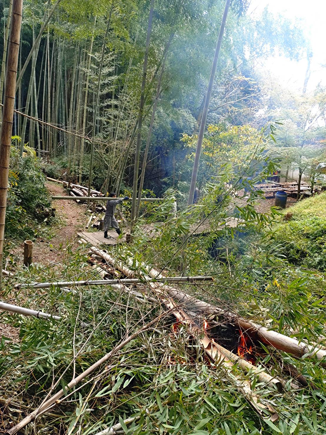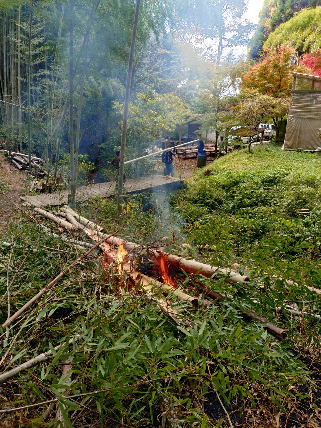 澄んだ空気の竹林で紅葉狩りもついでに楽しみながらの作業でした。