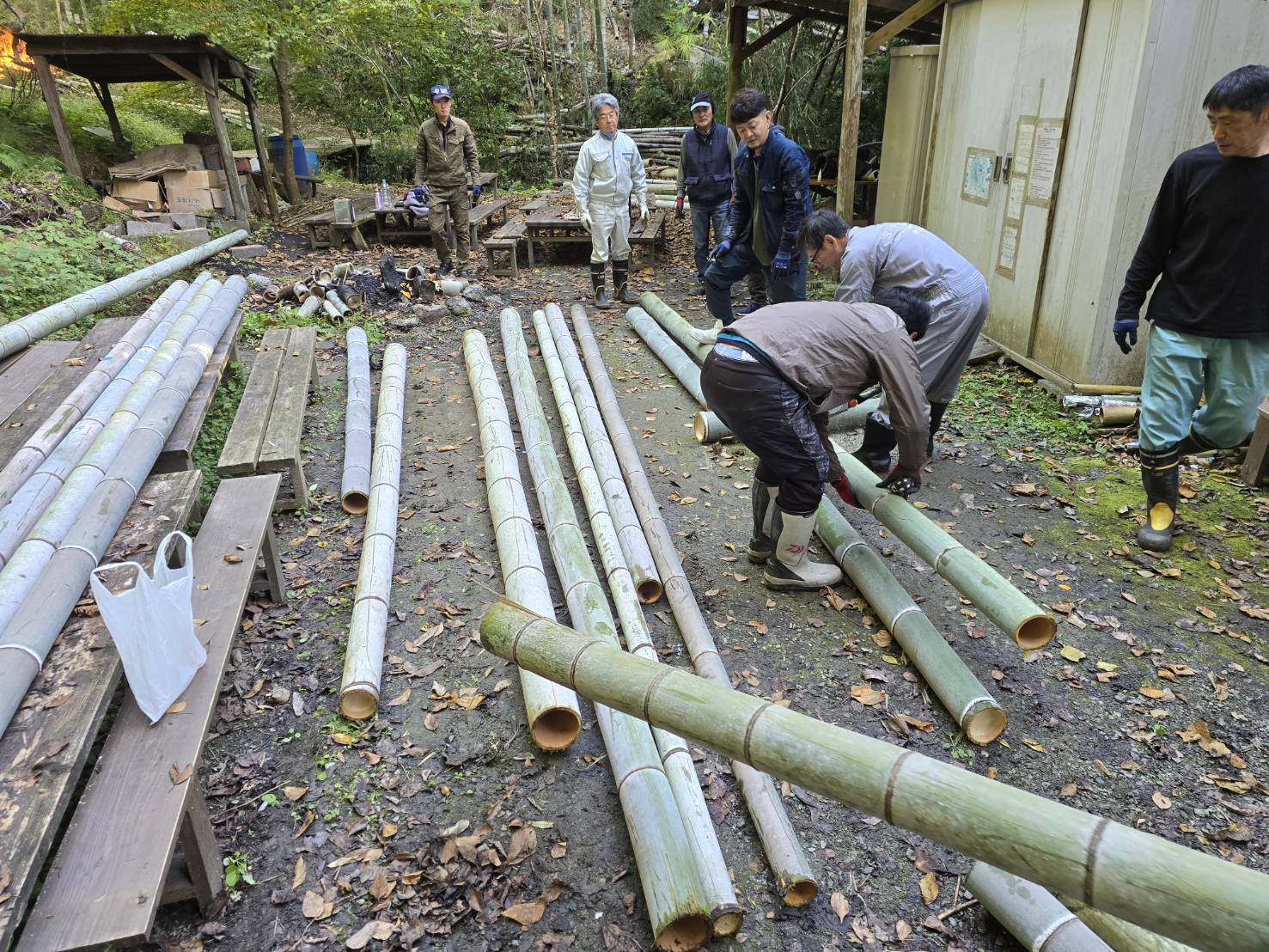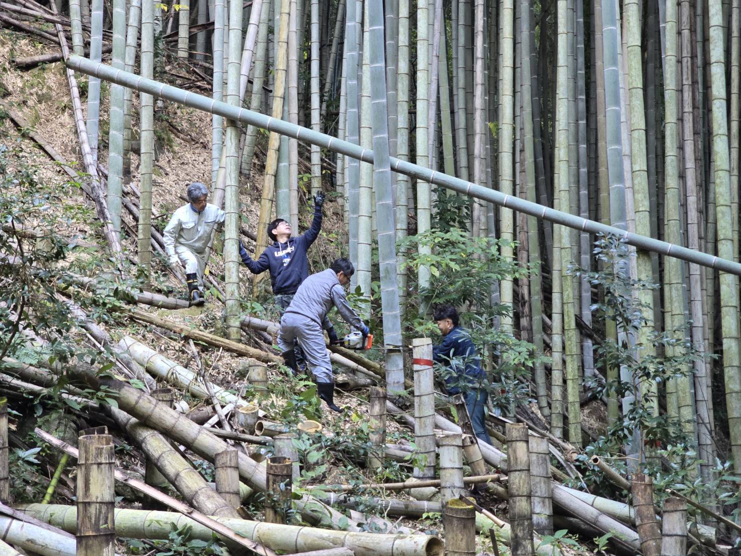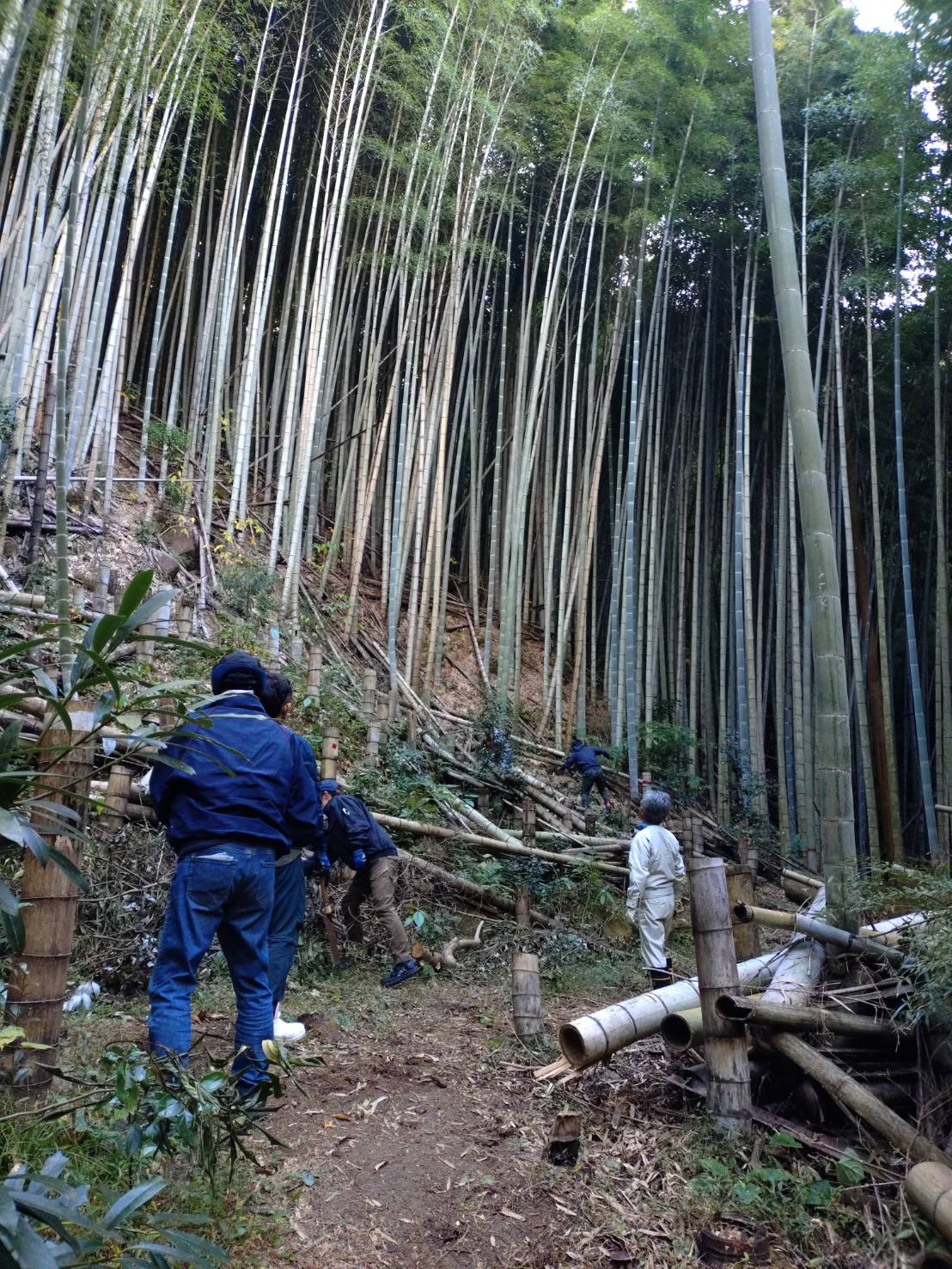 澄んだ空気の竹林で紅葉狩りもついでに楽しみながらの作業でした。