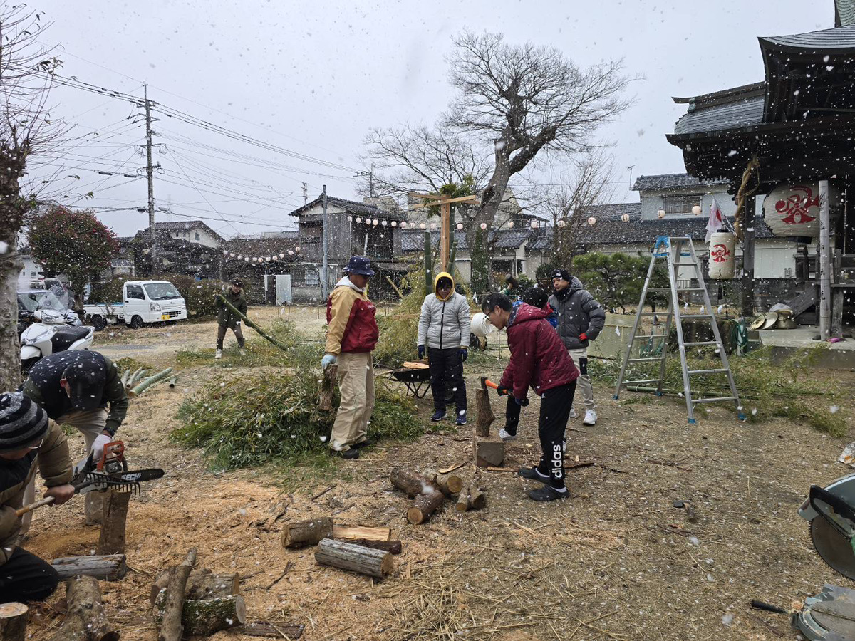 明日1月12日(祝)18時より開催致する鎮火祭の準備を行いました。